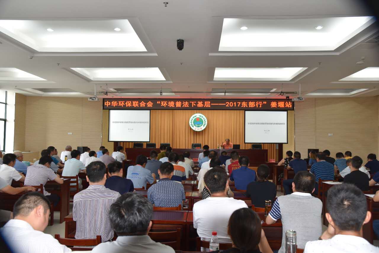 7月26日,中华环保联合会“环境普法下基层——2017东部行”来到姜堰。 环境保护部突发环境事件环境应急管理首席专家张志敏、姜堰区环保局全体干部职工、重点风险企业负责人近140人参加此次普法活动。
