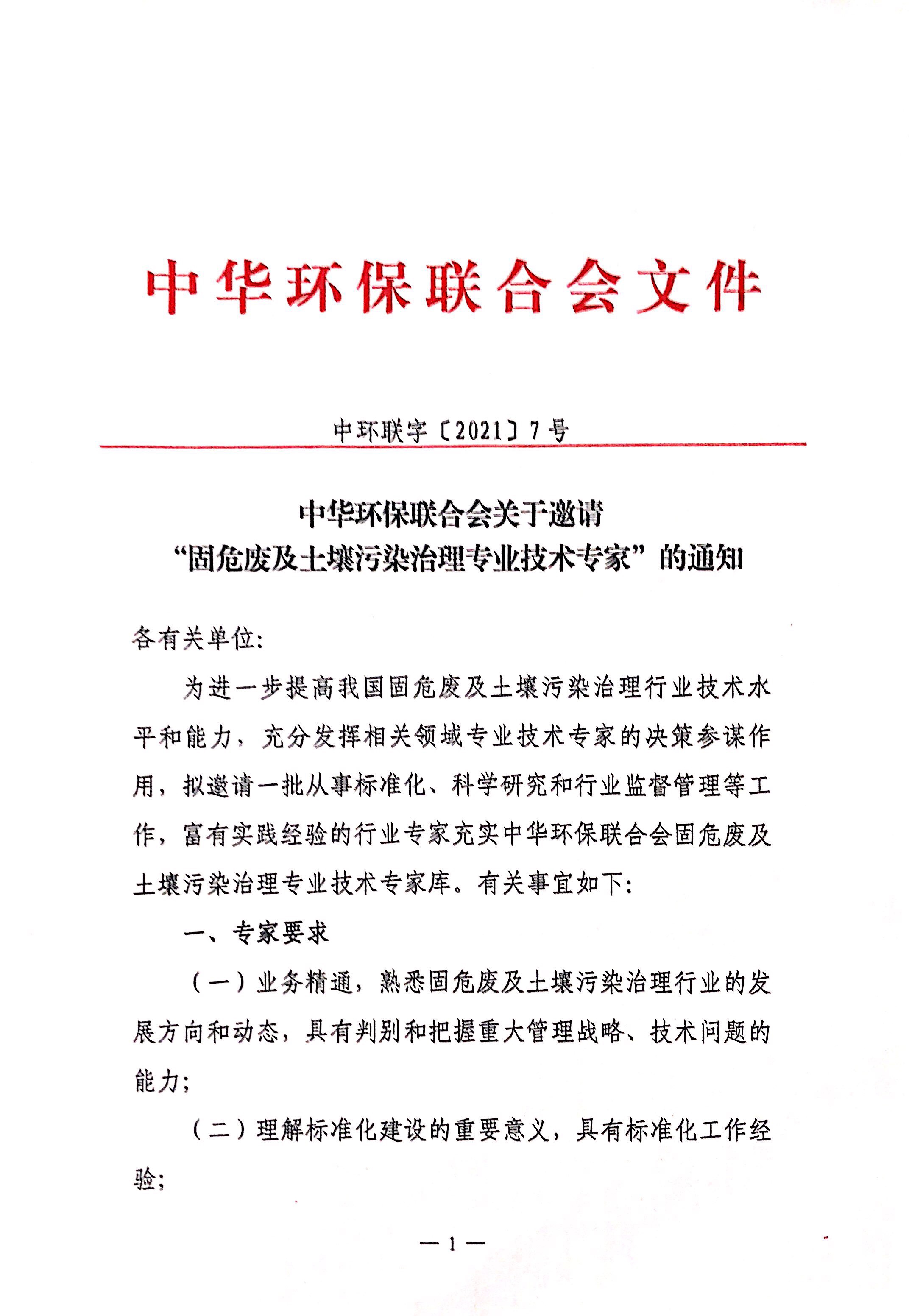 关于邀请“固危废及土壤污染治理专业技术专家”的通知