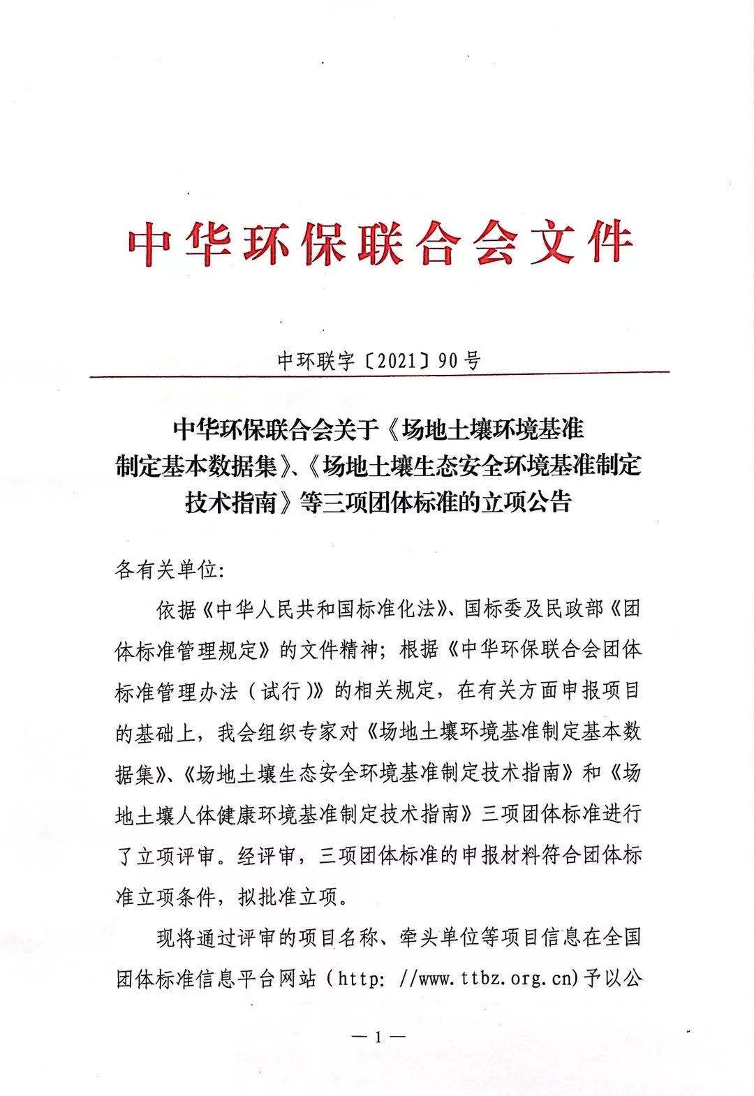 关于《场地土壤环境基准制定基本数据集》、《场地土壤生态安全环境基准制定技术指南》等三项团体标准的立项公告