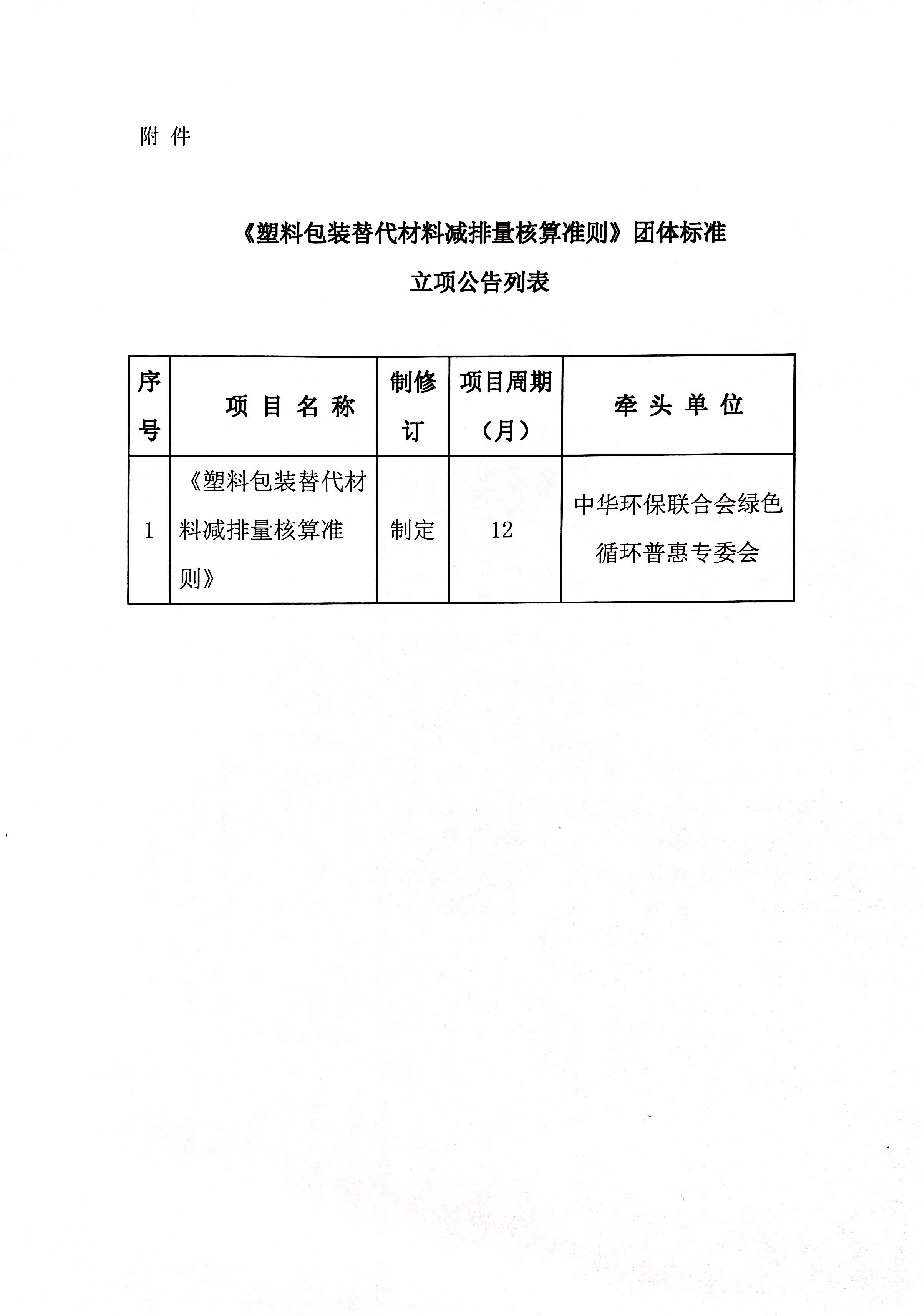 关于《塑料包装替代材料减排量核算准则》团体标准立项的公告