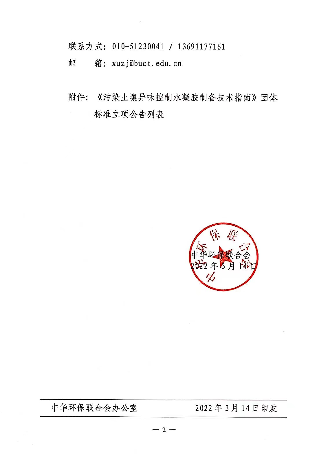 关于《污染土壤异味控制水凝胶制备技术指南》团体标准立项的公告
