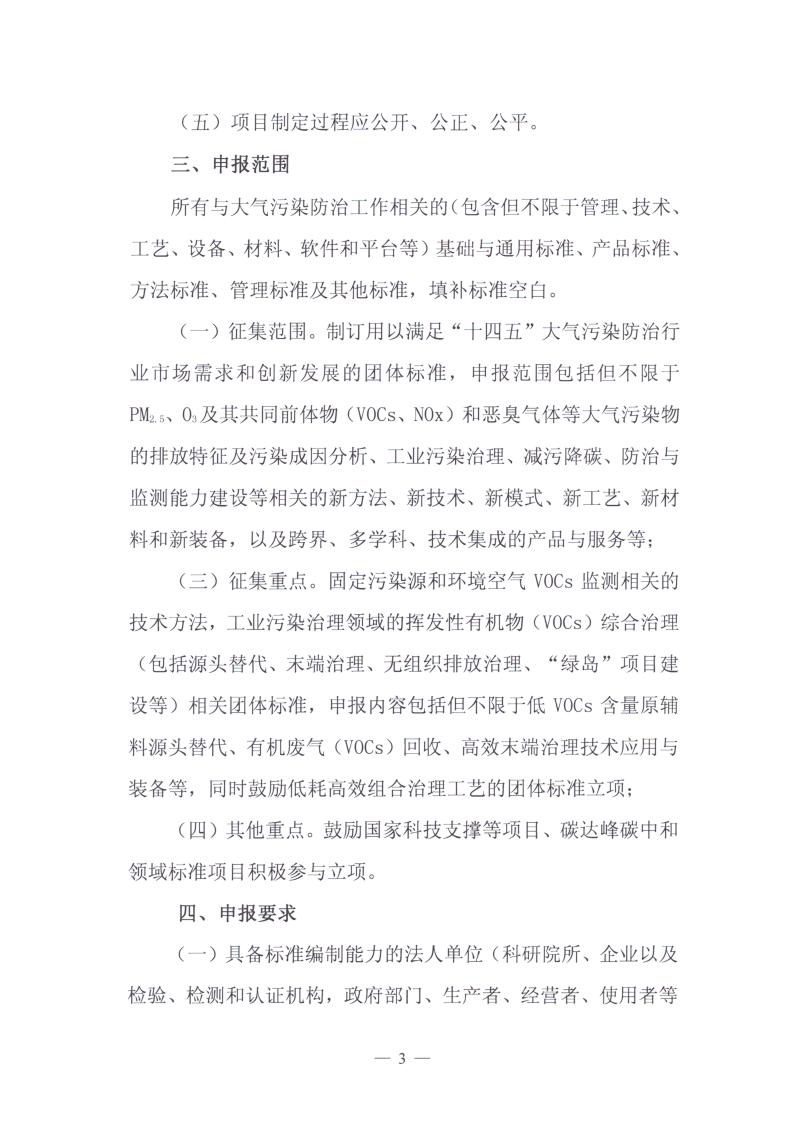 中华环保联合会关于公开征集2022年度大气污染防治领域团体标准制修订项目提案的通知