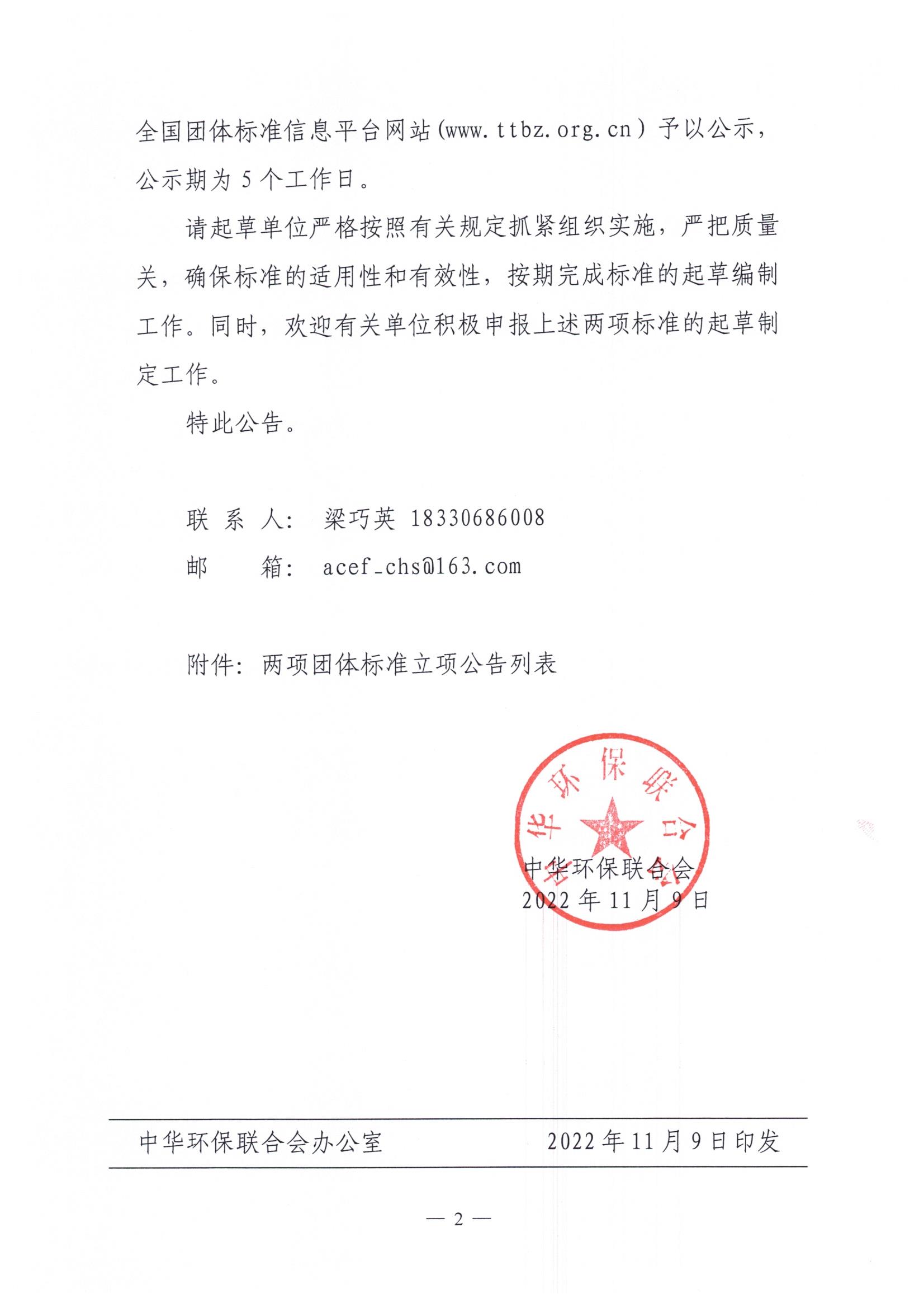 关于开展 2022年度中华环保联合会