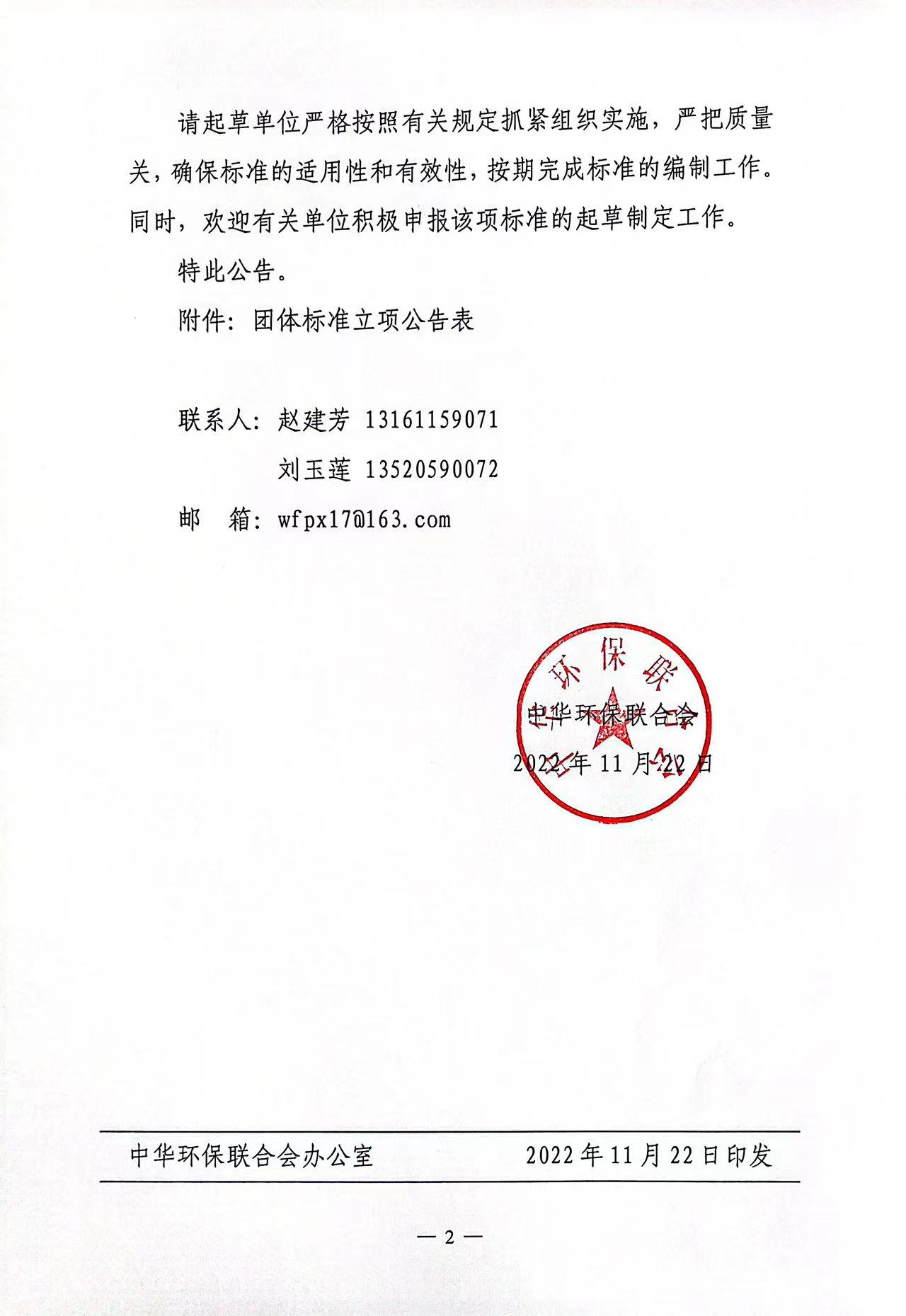 关于开展 2022年度中华环保联合会