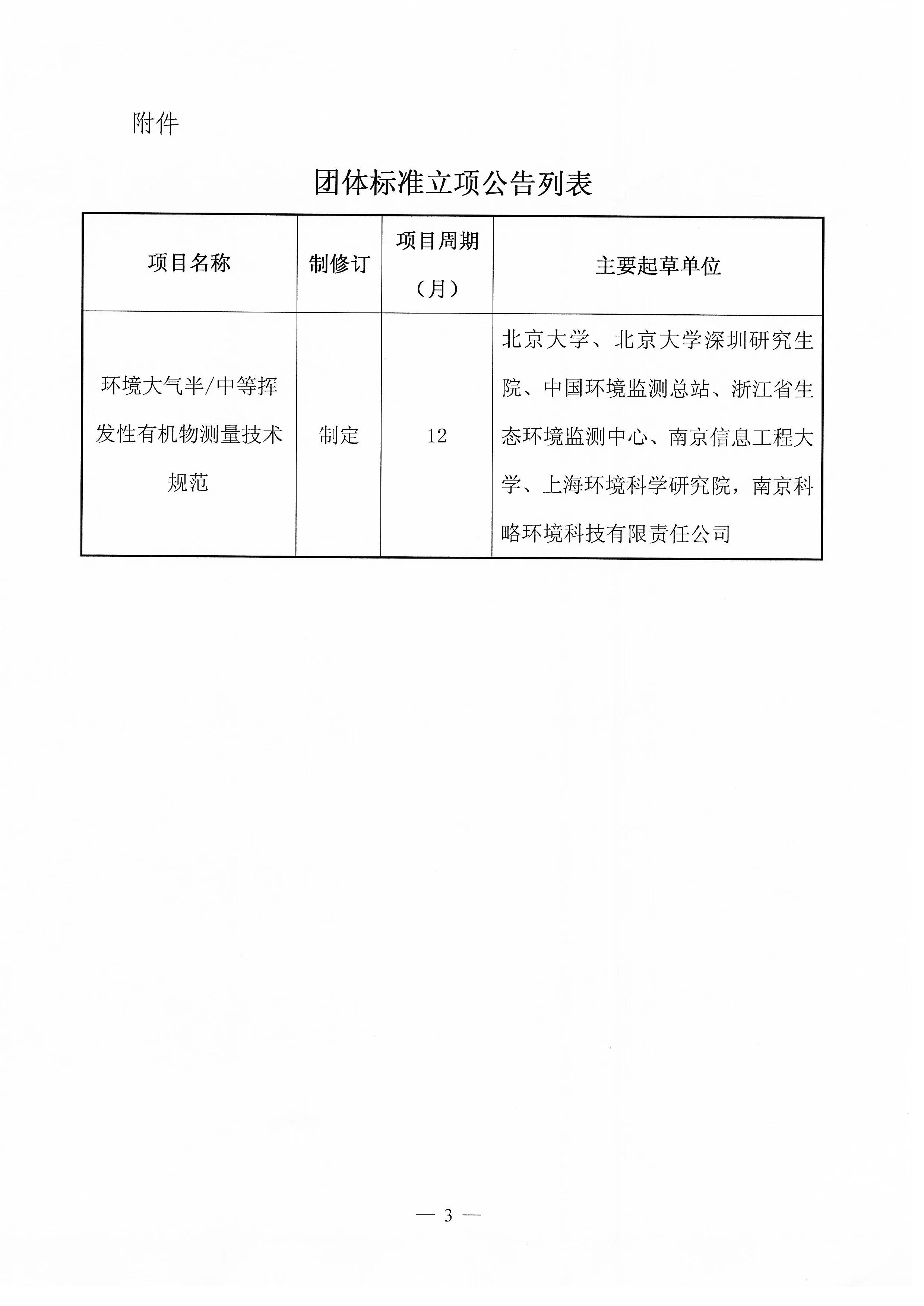 中华环保联合会关于《环境大气半/中等挥发性有机物测量技术规范》 团体标准立项的公告