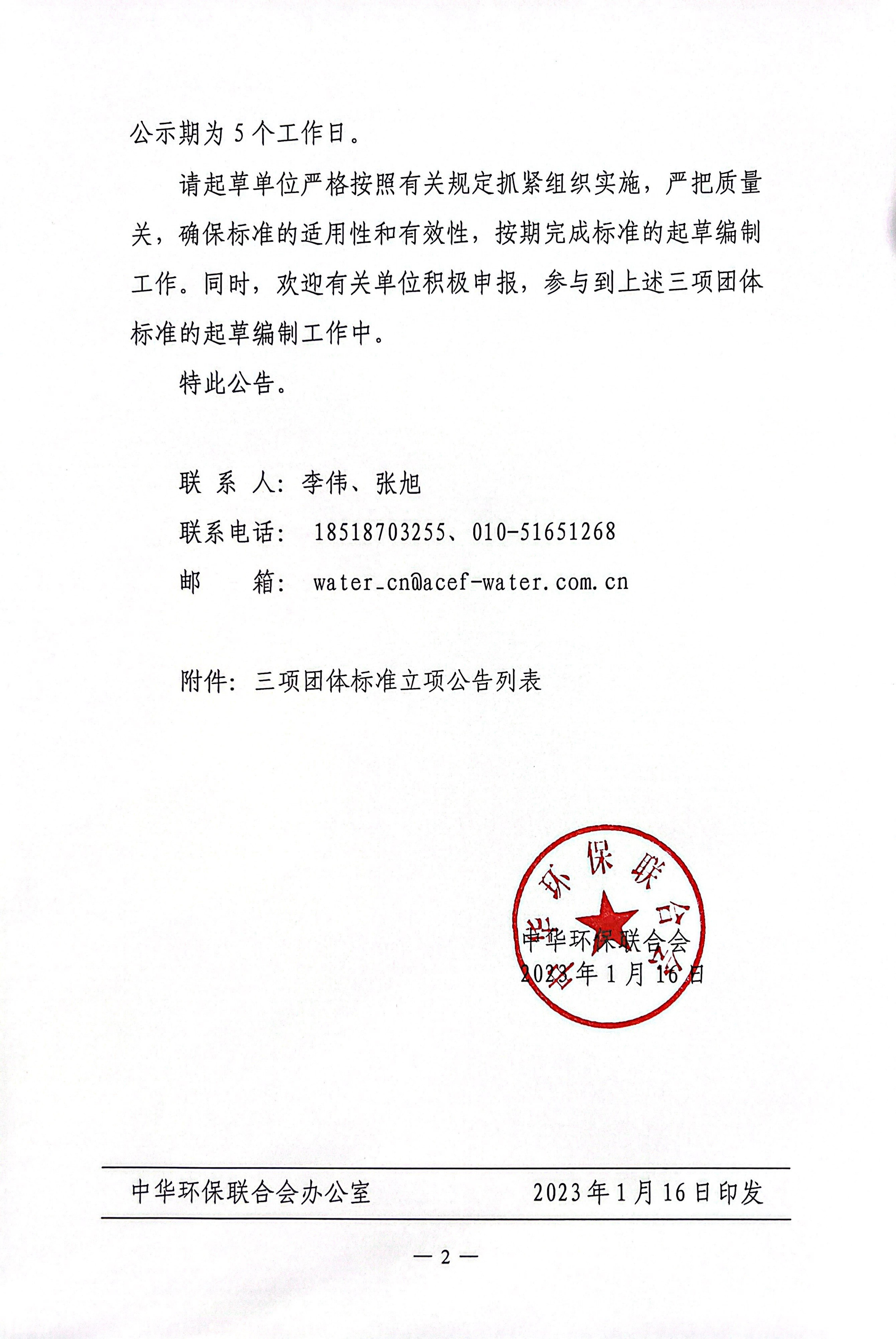 关于开展 2023年度中华环保联合会