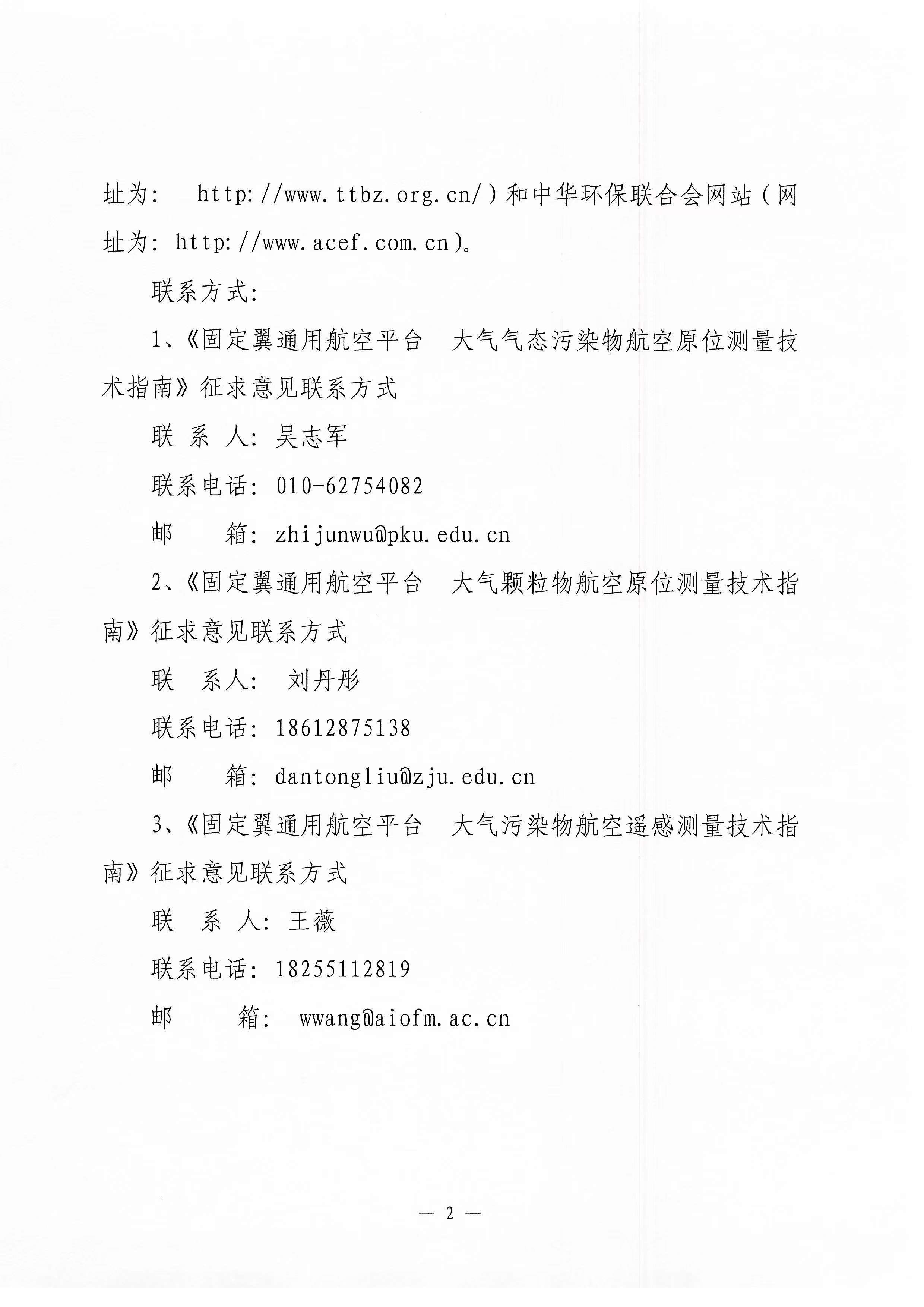 关于《固定翼通用航空平台 大气气态污染物航空原位测量技术指南》等三项团体标准征求意见的函 |