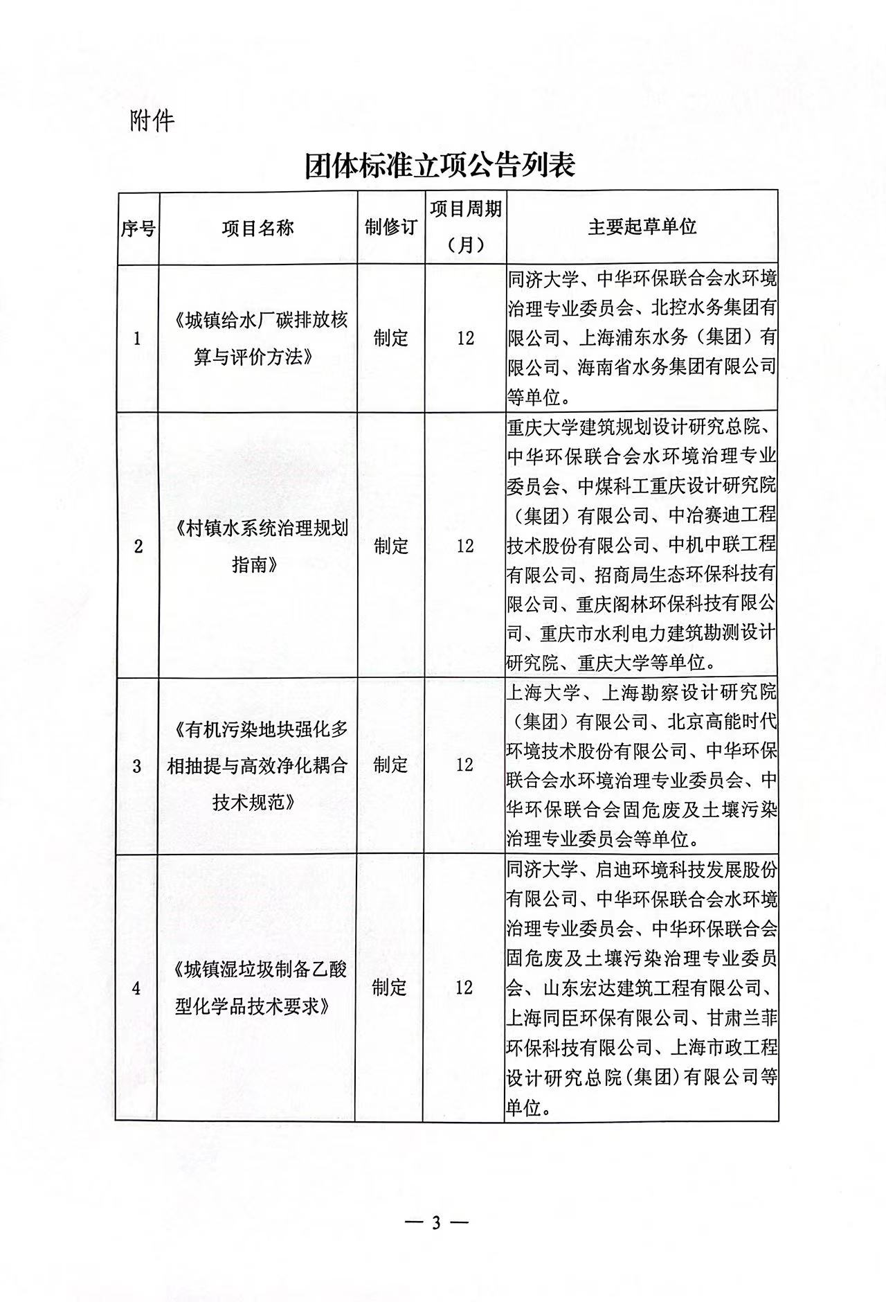关于《城镇给水厂碳排放核算与评价方法》、《村镇水系统治理规划指南》等4项团体标准立项的公告