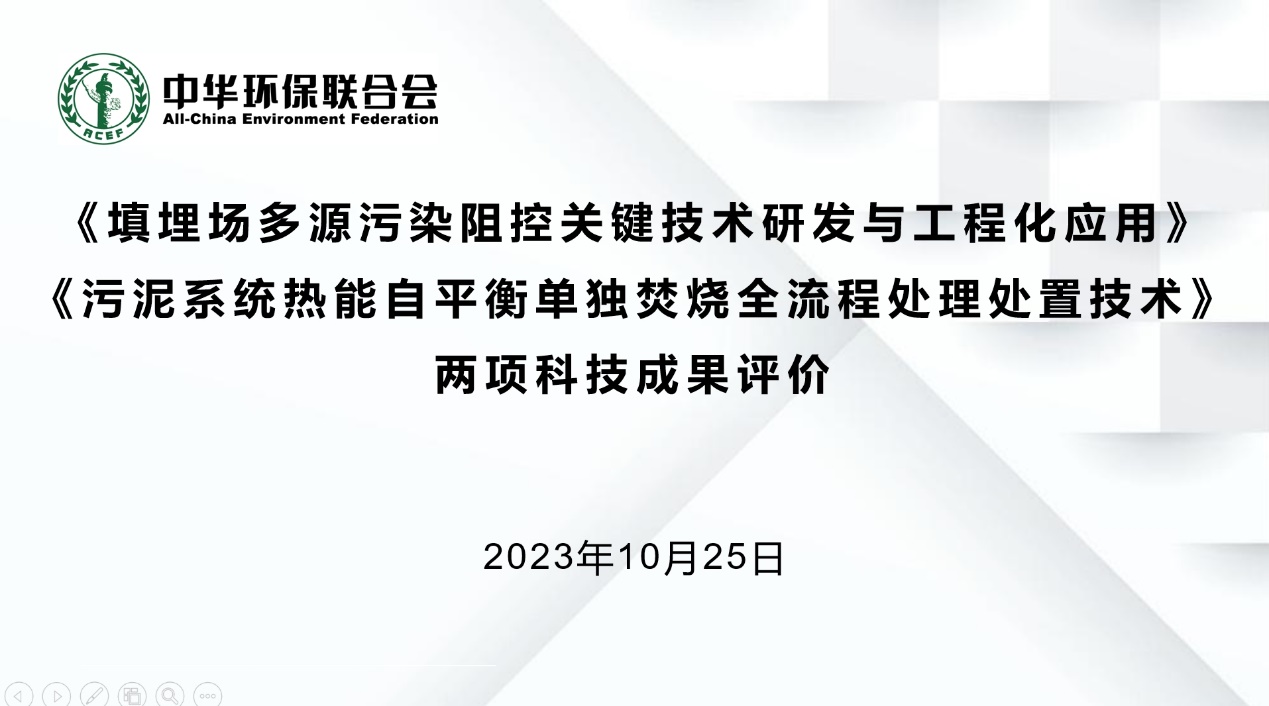 2023年10月25日,中华环保联合会能源环境专业委员会组织召开了“填埋场多源污染阻控关键技术研发与工程化应用”及“污泥系统热能自平衡单独焚烧全流程处理处置技术”两项科技成果评价会。