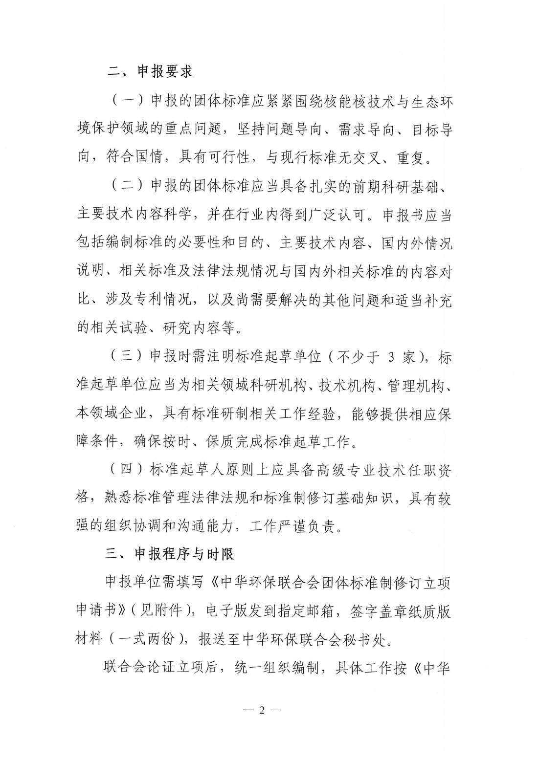 关于征集“核能核技术与生态环境保护团体标准项目”的通知