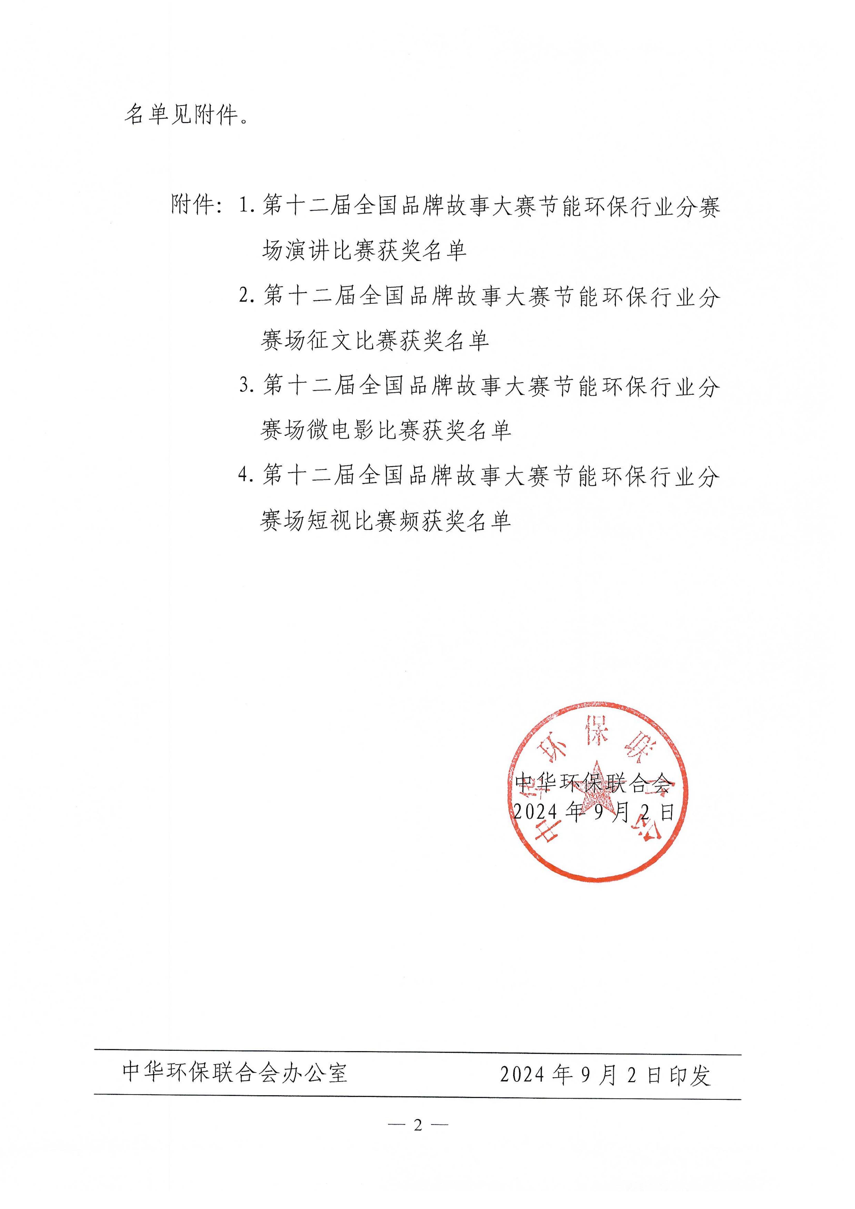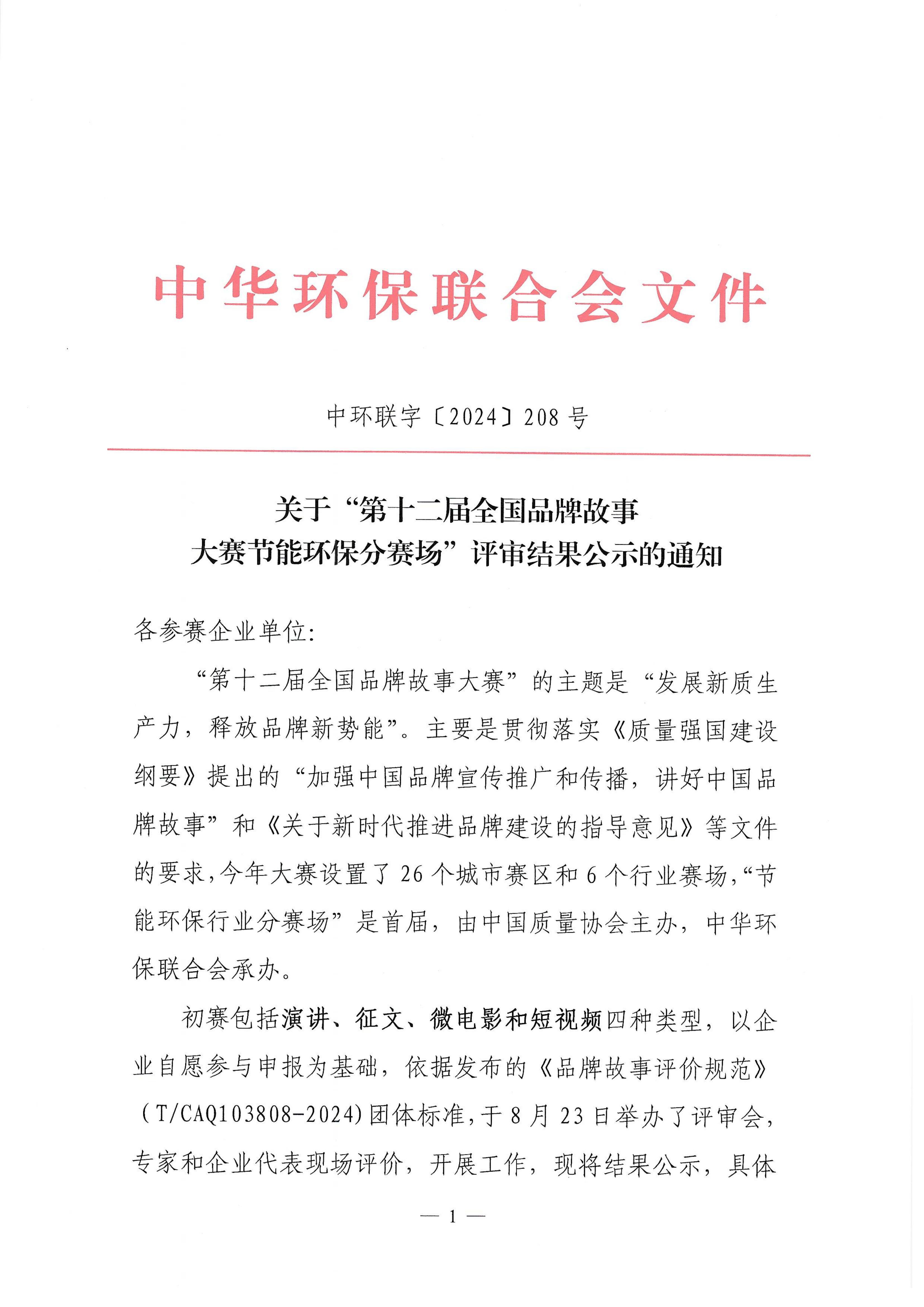关于“第十二届全国品牌故事大赛节能环保分赛场”评审结果公示的通知