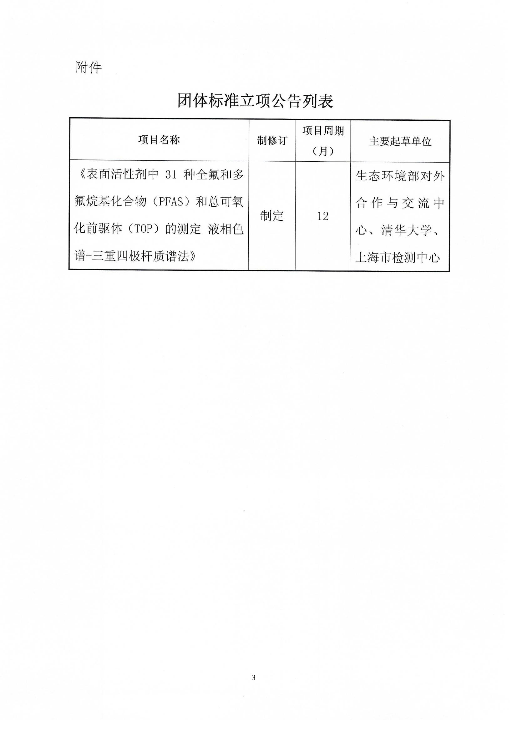 关于《表面活性剂中31种全氟和多氟烷基化合物(PFAS)和总可氧化前驱体(TOP)的测定 液相色谱-三重四极杆质谱法》 团体标准立项的公告