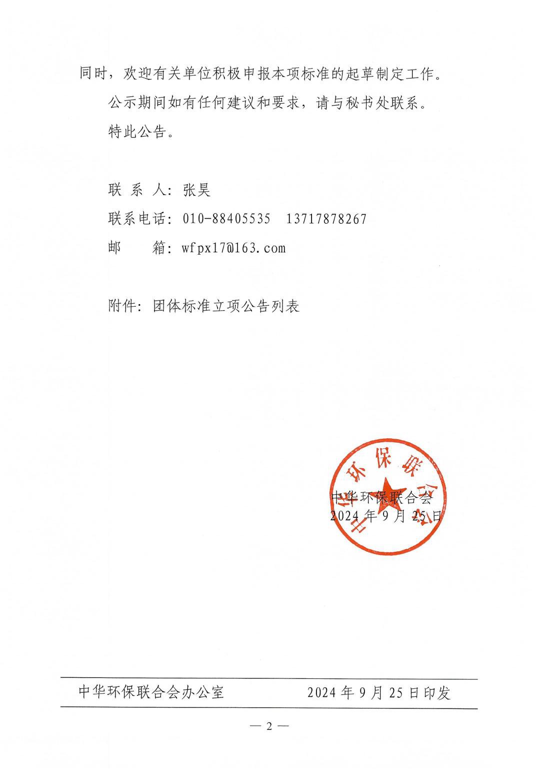 关于发布《中华环保联合会科学技
