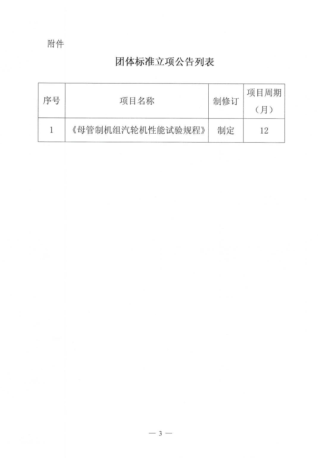 关于《母管制机组汽轮机性能试验规程》团体标准立项的公告
