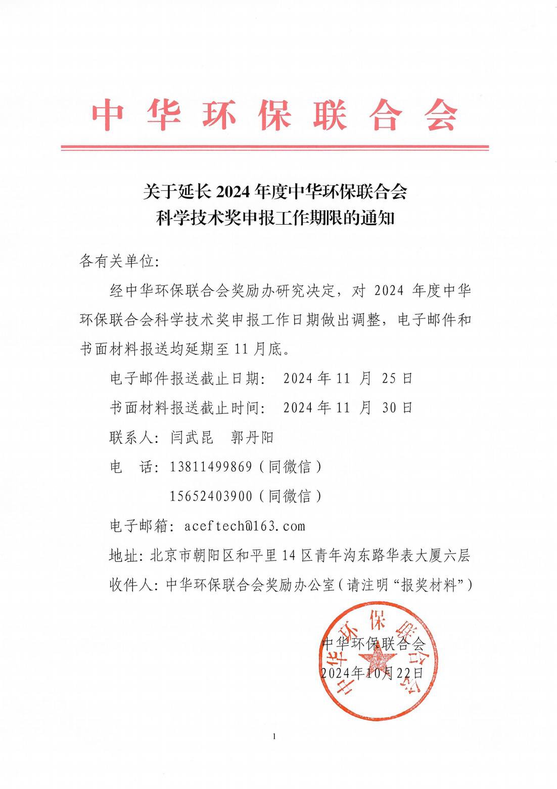 关于延长2024年度中华环保联合会科学技术奖申报工作期限的通知_00