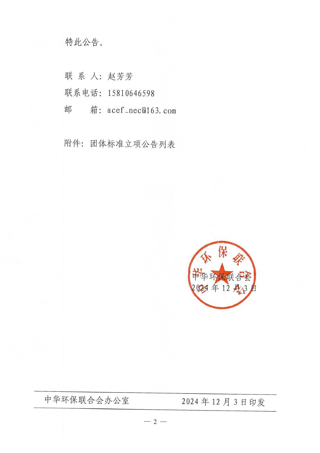 中华环保联合会关于公示2023年度