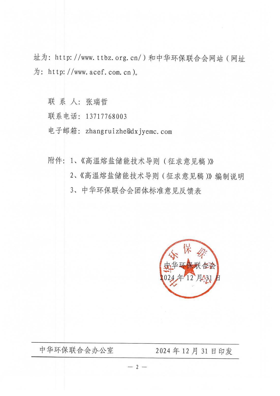 关于《高温熔盐储能技术导则》团体标准征求意见的函