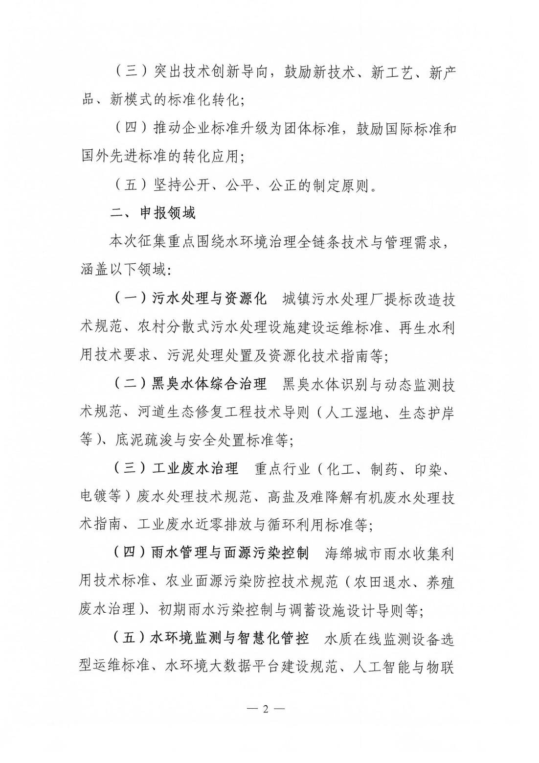关于征集2025年度水环境治理领域团体标准计划项目立项的通知