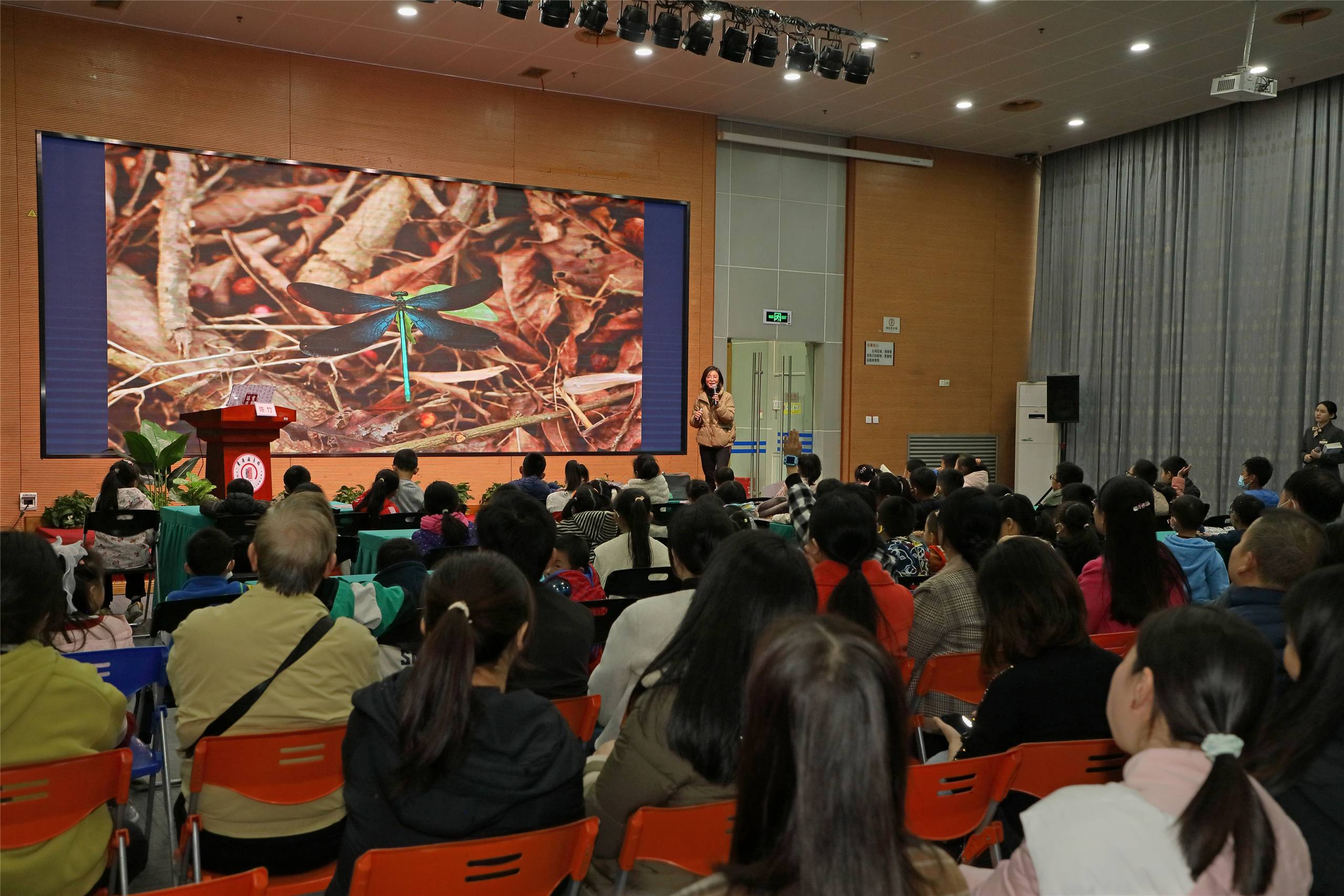 讲座上,陈竹通过自然观察小故事,带领现场听众领略城市自然世界的丰富多彩,激发孩子们观察身边生物多样性的热情,启发参与者思考人和自然相处之道,打造人与自然和谐共生的现代化市域,共同建设美丽重庆。