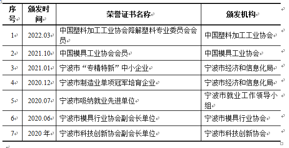 公司高度重视研发工作和技术开发,截至2022年1月6日公司拥有8项授权发明专利,75项实用新型专利,7项外观专利。公司完整的掌握了模具设计制造所需的所有技术,并拥有专业高效的设计及生产团队。相关模具产品的型腔加工精度可0.005mm、表面粗糙度可达0.012μm(雾状镜面)、使用寿命达100万模次,其加工精度、可靠性、使用寿命能够满足产业所需各类高精度塑料零配件的设计要求。