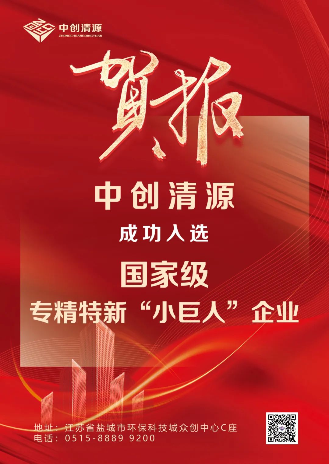 江苏中创清源科技有限公司被认定为国家级专精特新“小巨人”企业。