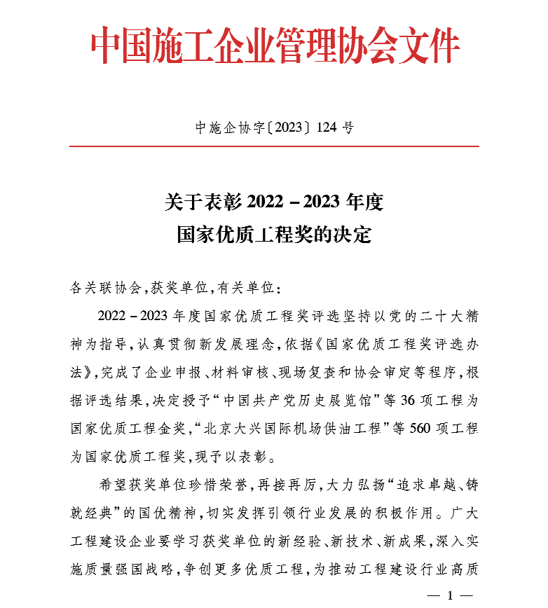 近日,中国施工企业管理协会公示了《2022-2023年度第二批国家优质工程奖候选项目名单》江苏道同环境科技有限公司作为西安航天基地用服务产业园基础设施(南、北地块)项目参建方之一榜上有名!