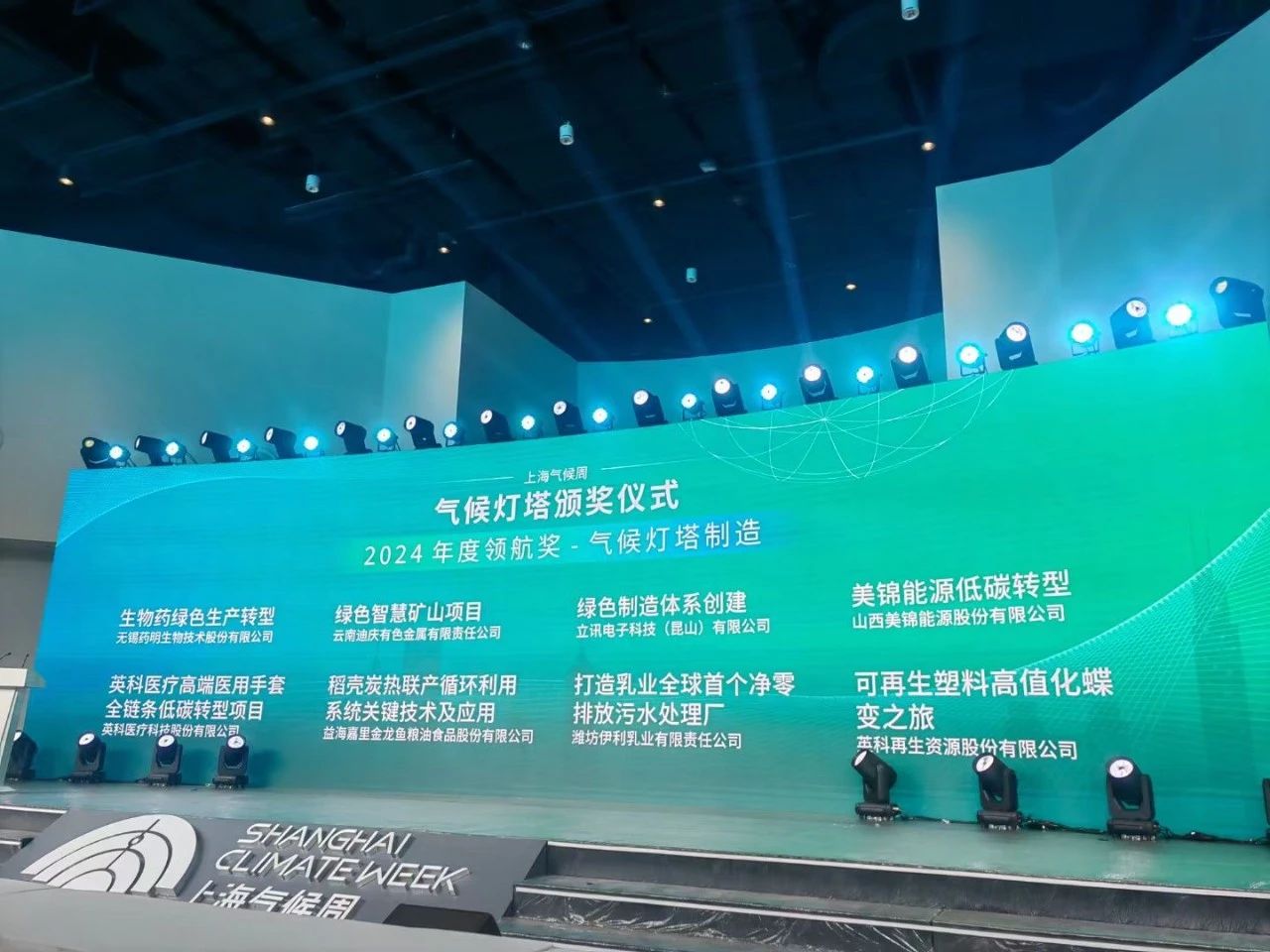 2024年4月22日,正值第55个世界地球日,备受瞩目的上海气候周2024在上海浦东美术馆盛大开幕。现场首发《“气候灯塔”新篇章:气候变化前沿科技最新洞见》白皮书,随后举行了气候灯塔用例颁奖仪式,英科再生凭借“可再生塑料高值化蝶变之旅”项目荣膺