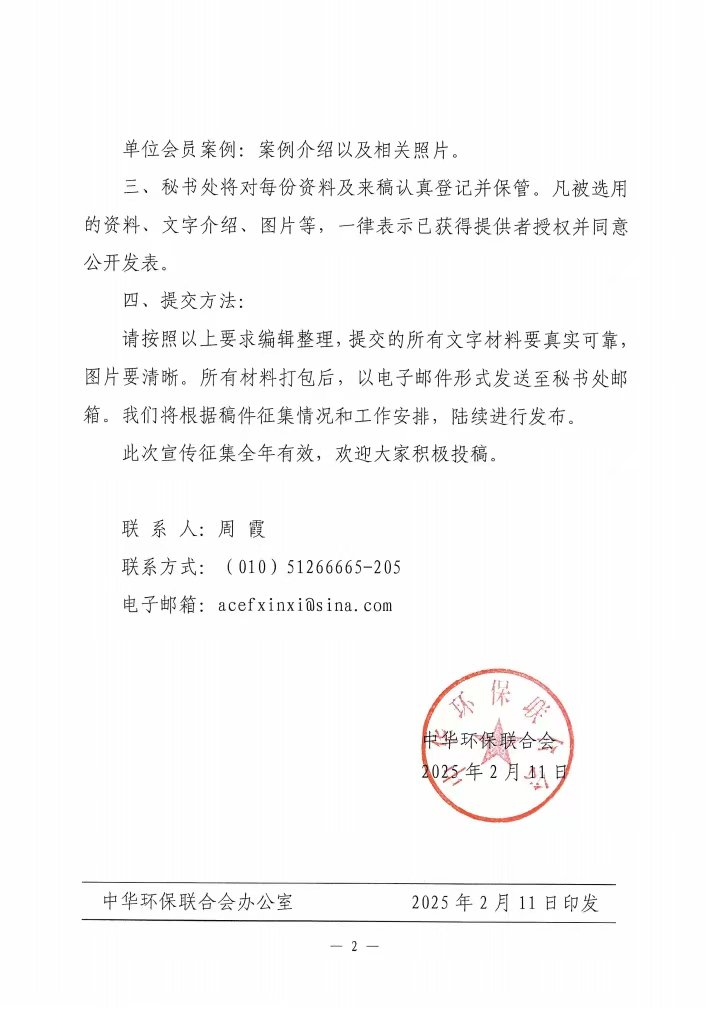 中华环保联合会关于开展单位会员宣传资料征集的函
