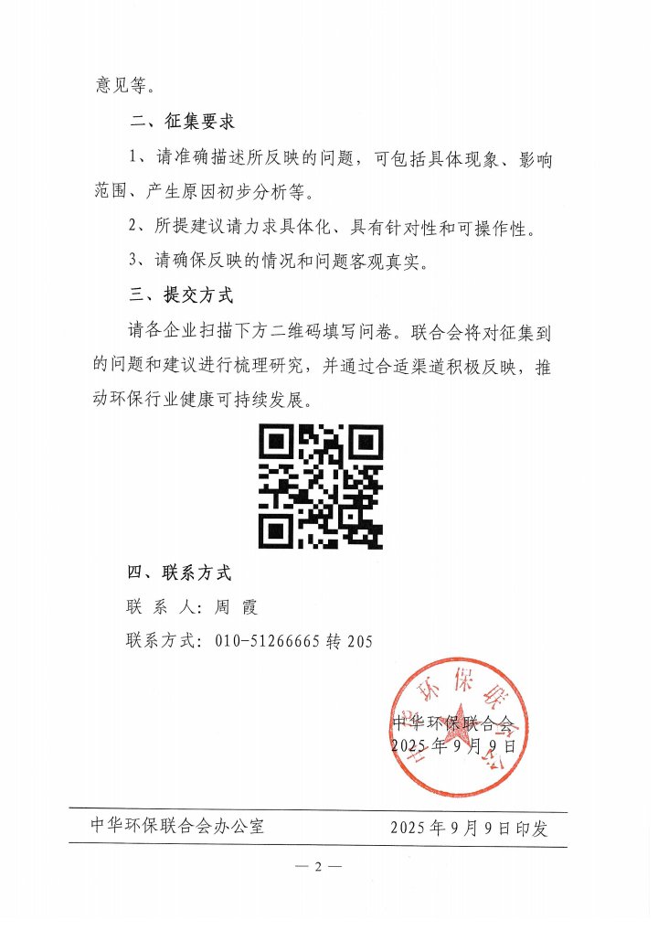 关于征集环保行业相关问题与建议的