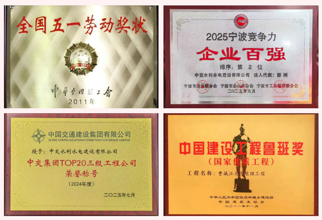 公司先后荣膺全国五一劳动奖状、全国优秀施工企业、浙江省建筑强企、浙江省优秀水利企业和宁波市建筑业龙头企业,连续三年入选中交集团TOP20三级工程公司,位列宁波市竞争力企业百强榜第2位。公司承建的多项工程荣获詹天佑奖、大禹奖、鲁班奖和国家优质工程金奖,获国家科技进步奖1项、省部级和集团级科技进步奖20项。