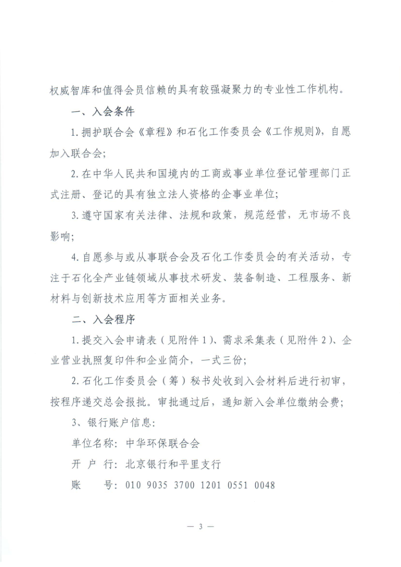 2.石化工作委员会(筹)秘书处收到入会材料后进行初审,按程序递交总会报批。审批通过后,通知新入会单位缴纳会费;