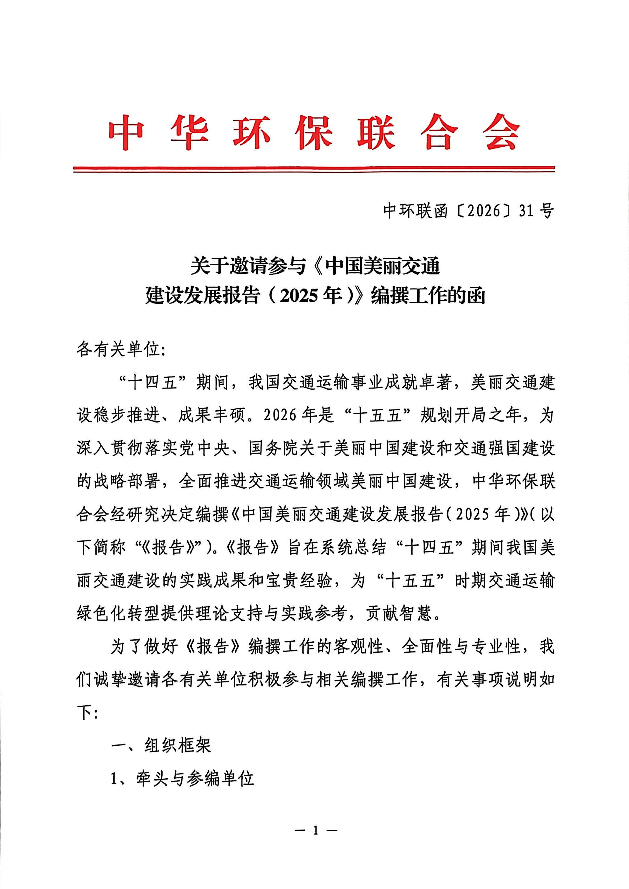关于邀请参与《中国美丽交通建设发展报告(2025年)》编撰工作的函