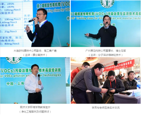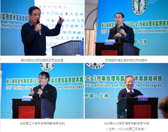 邀请到为学员授课的老师有:著名VOCs治理专家、解放军防化院研究员、博士生导师栾志强,华东理工大学环境工程学院副院长、教授修光利,环境保护部环境标准研究所研究员张国宁分别以“VOCs治理政策标准与达标运用”为题作了专题报告。随后,上海市环境监测中心高级工程师宋钊和台湾专家杨健华高工就“VOCs检测技术、要求与运用实践”课题分别做了深入讲解。然后,重点由华北电力大学环境学院教授李守信、清华大学环境学院副教授席劲瑛、同济大学环境学院教授羌宁、江苏省环科院高级工程师李建军、上海环科院工程中心高级工程师张钢锋、上海机电设计研究院高级工程师李磊和企业实操讲师分别就VOCs治理技术指引和工艺系统,VOCs废气收集与治理效率评估,VOCs主流治理技术原理、工艺条件与案例运用等热点问题进行了深入讲解和交流。