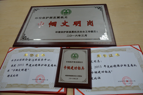 我会法律中心被授予“环保部直属机关巾帼文明岗”称号、匡春凤被授予“环保部直属机关巾帼文明标兵”称号