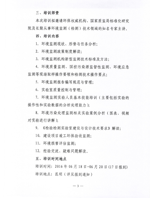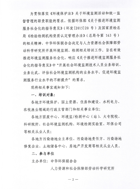 中华环保联合会关于举办《环境监测技术人员》2016年第十三期专业能力培训班的通知