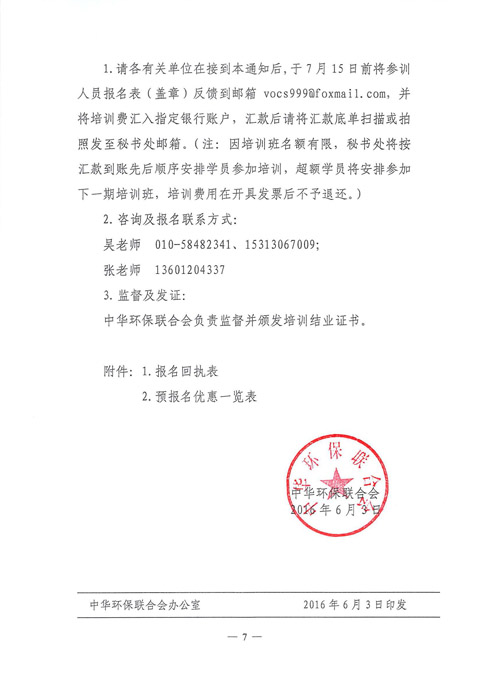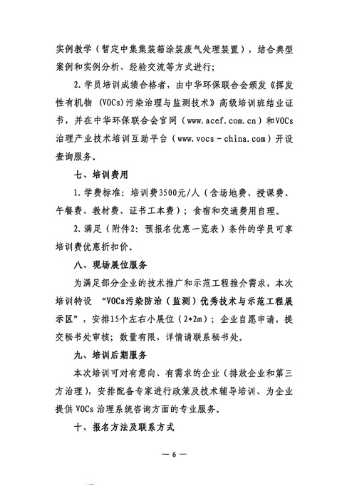 中华环保联合会关于举办“第四期挥发性有机物(VOCs)污染治理与监测技术高级培训班”的通知