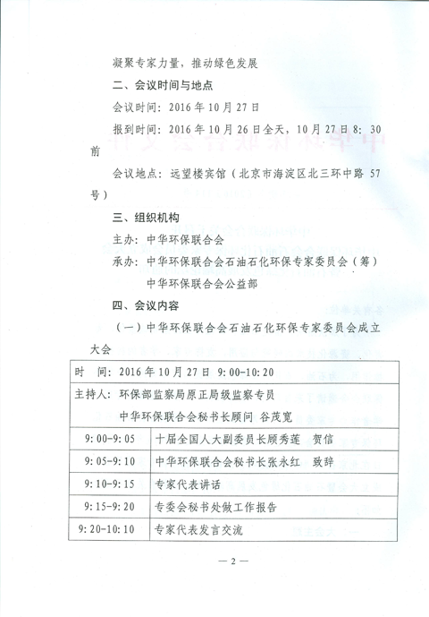 关于召开中华环保联合会石油石化环保专家委员会成立大会暨石油石化绿色发展高端论坛的通知