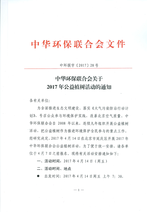 中华环保联合会关于2017年公益植树活动的通知