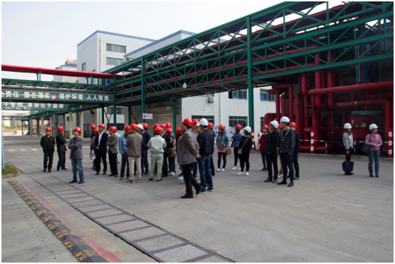参观学习企业生产过程中固废综合管理系统,工厂技术人员详细介绍企业固废综合管理经验。