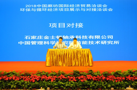 会议期间,石家庄金士顿轴承科技有限公司与中国管理科学研究院节能技术研究所现场举办了签约仪式,双方将在节能环保领域开展战略合作。定州市北方循环经济示范园总经理刘春会发布了一批园区产业需求计划,参会的京津冀环保企业现场洽谈;包括河北金隅鼎鑫、华北制药、迎新玻璃、沙河安全实业等9家河北企业进行项目对接,部分企业现场达成合作意向。