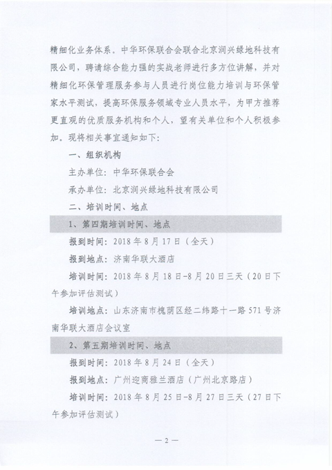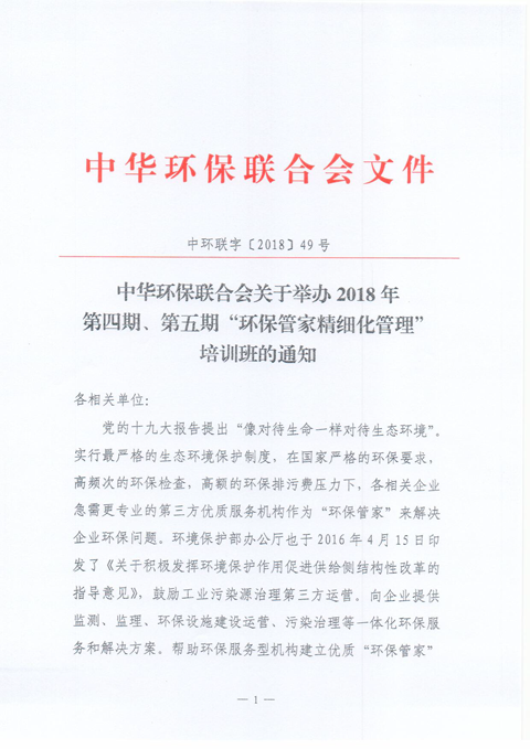 关于举办2018年第四期、第五期“环保管家精细化管理”培训班的通知
