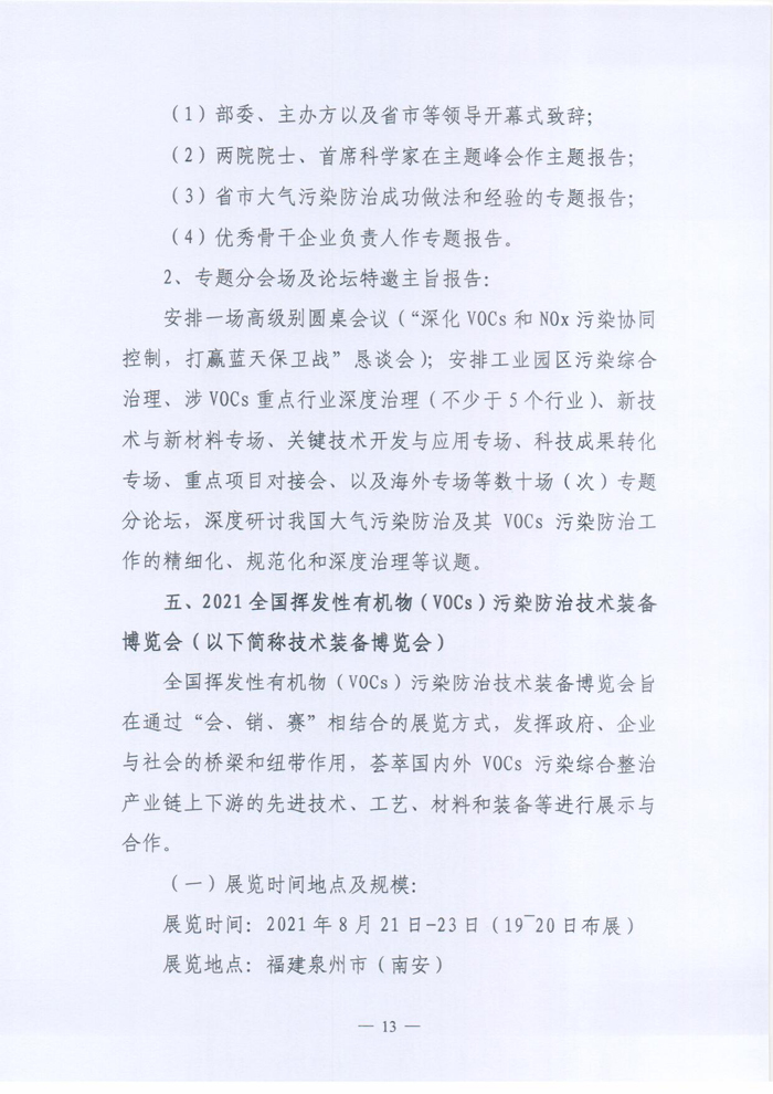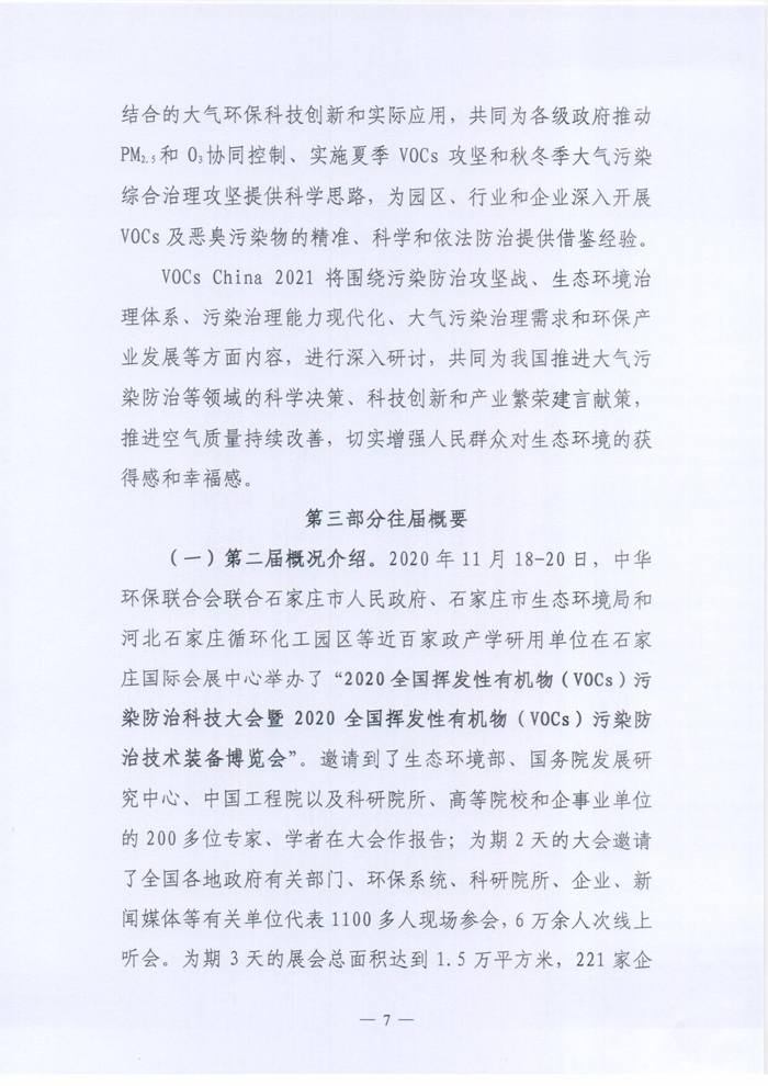 关于举办“2021全国挥发性有机物(VOCs)污染防治科技大会暨2021全国挥发性有机物(VOCs)污染防治技术装备博览会,2021全国恶臭污染物测试、环境监测与控制技术装备展览会”的预通知