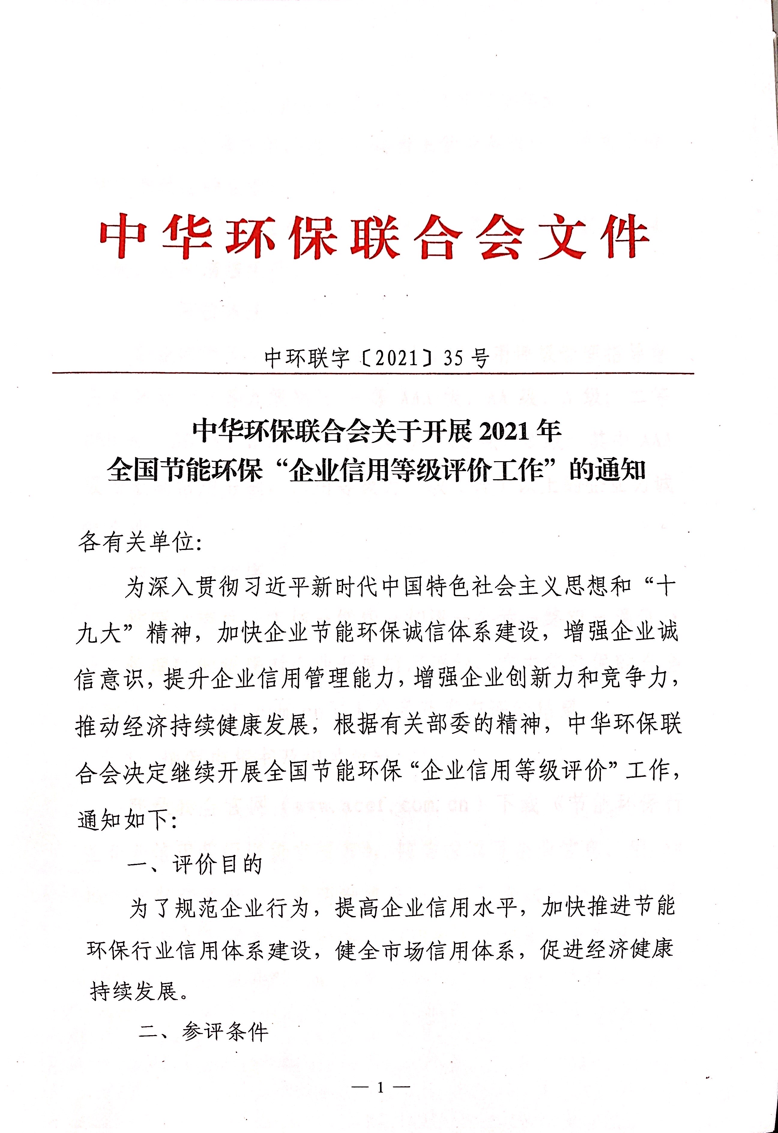 关于开展2021年全国节能环保“企业信用等级评价工作”的通知