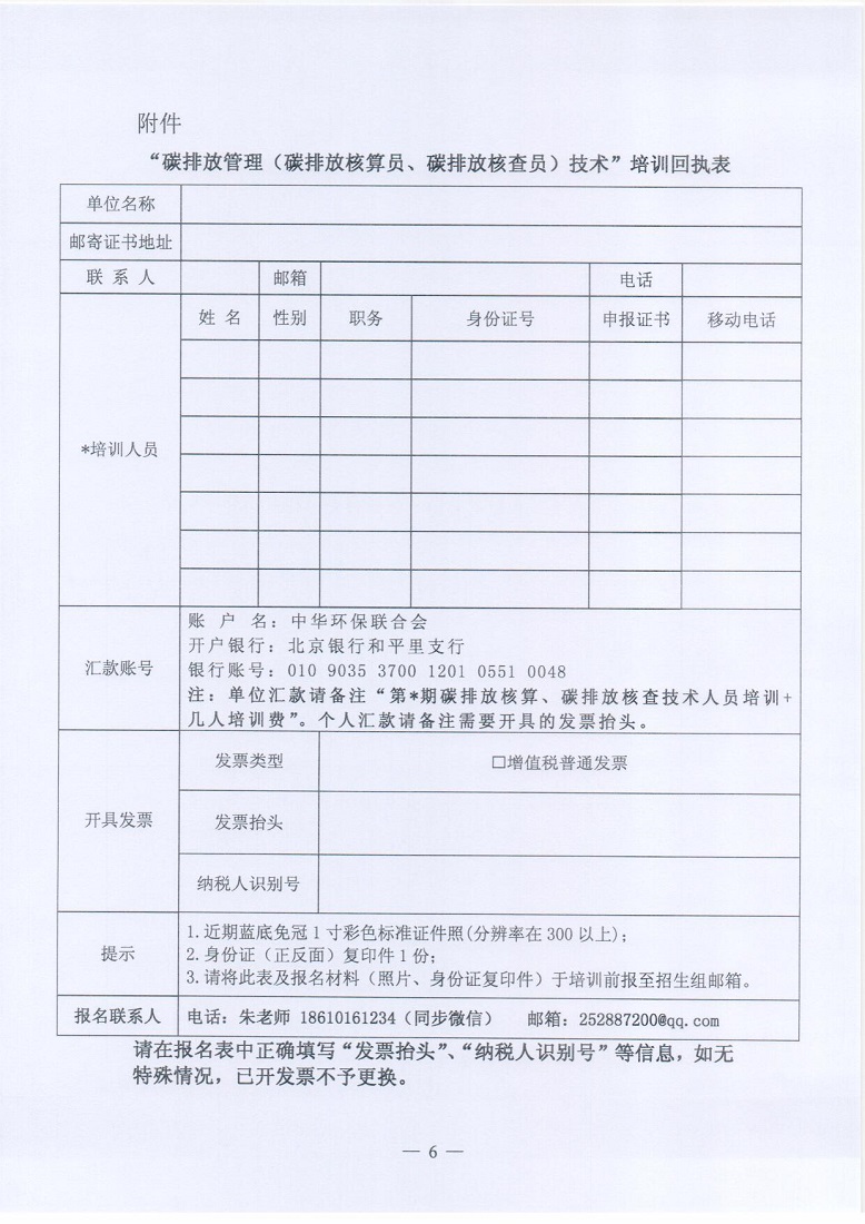 “碳排放管理(碳排放核算员、碳排放核查员)技术”培训回执表