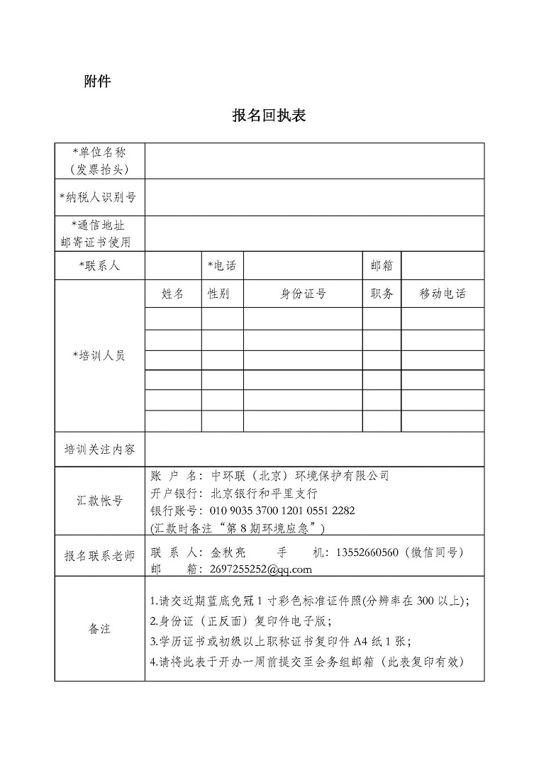 报名回执表