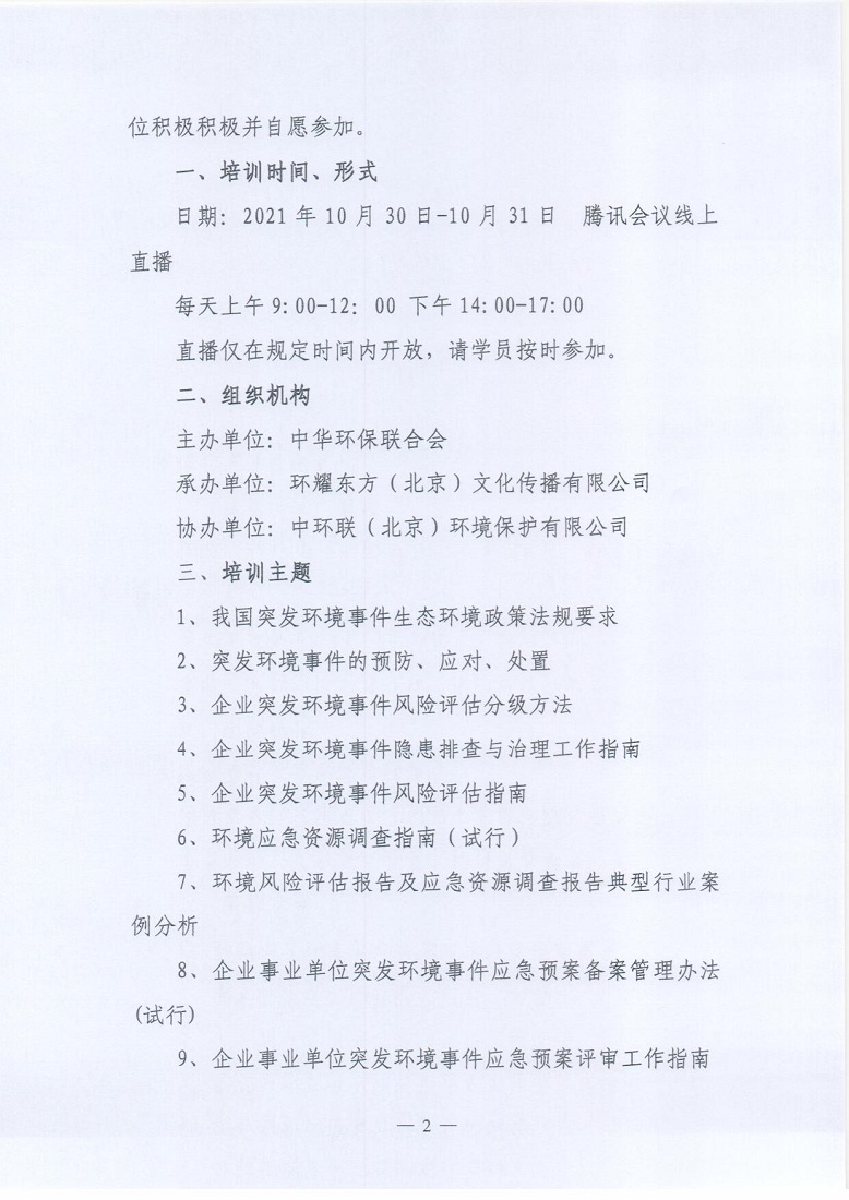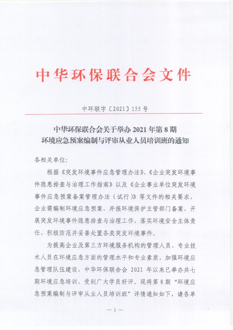 关于举办2021年第8期环境应急预案编制与评审从业人员培训班的通知