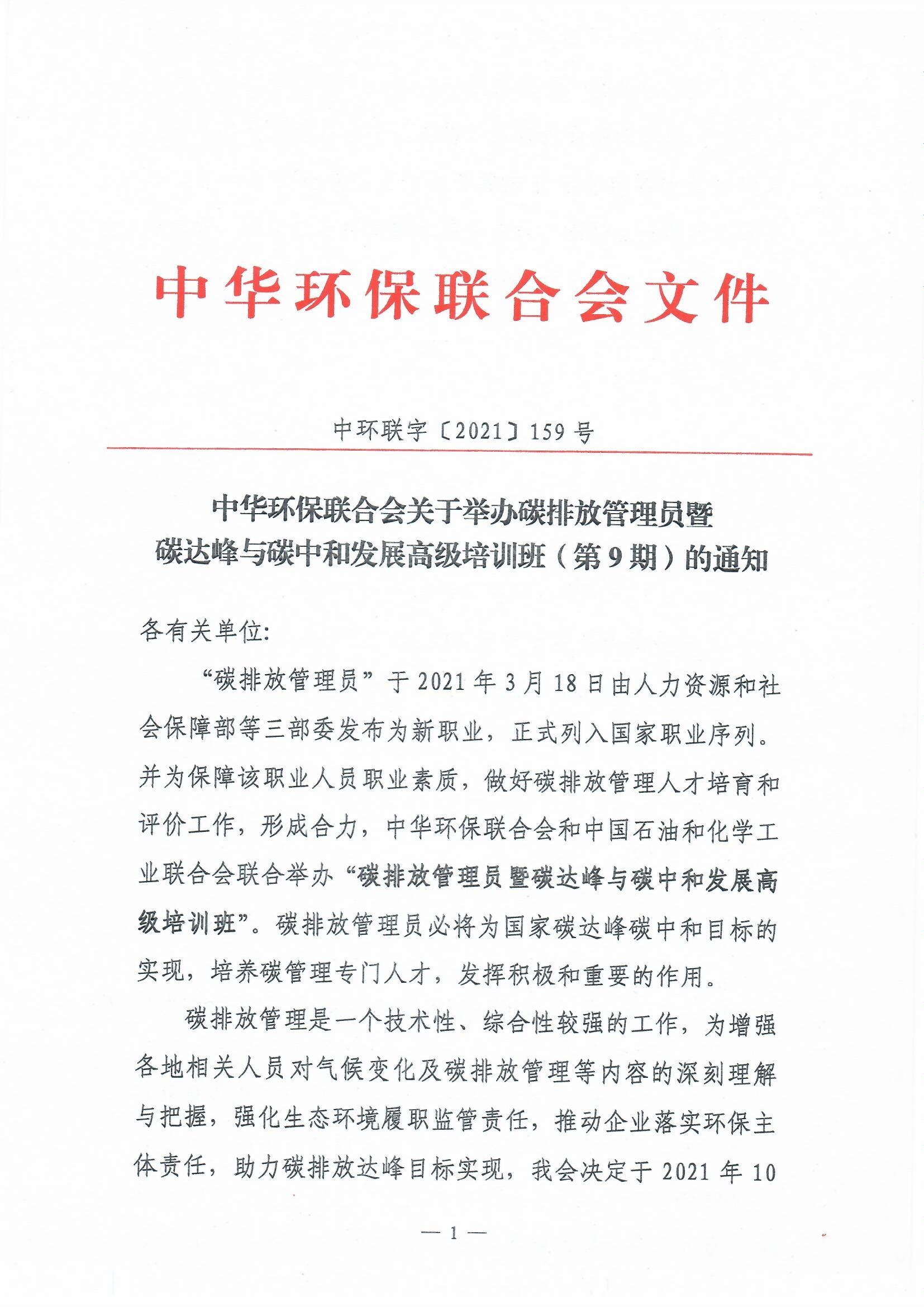 关于举办碳排放管理员暨碳达峰与碳中和发展高级培训班(第9期)的通知