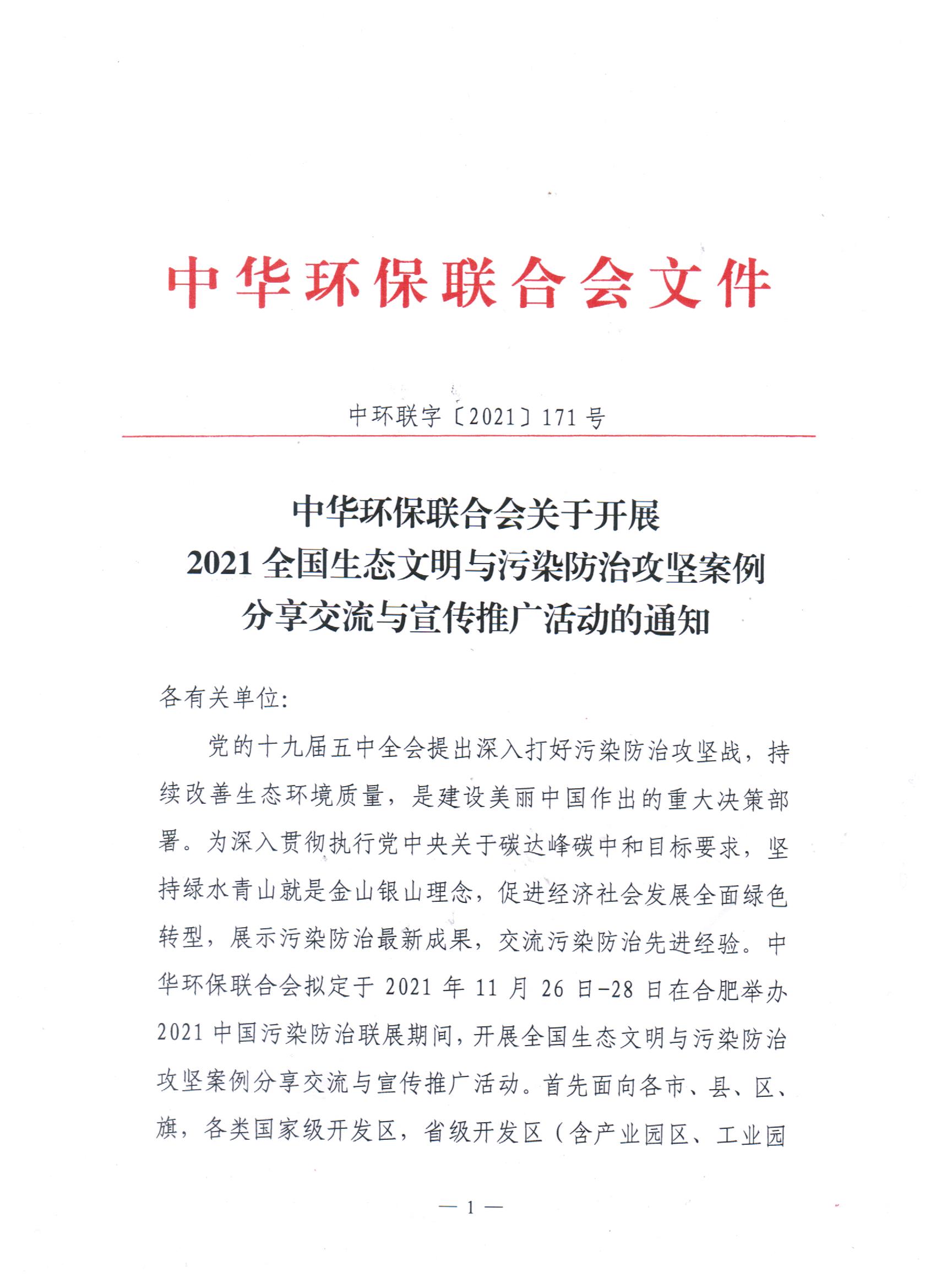 关于开展2021全国生态文明与污染防治攻坚案例分享交流与宣传推广活动的通知