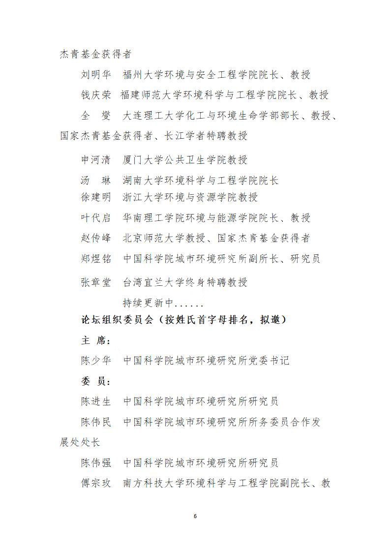 副主席:杨朝飞 曲久辉 刘文清 卫 宏 杜少中 柴发合 张程忠 魏山峰 杨国平 张永红 谢玉红 朱建平 张建新 刘卫星 吴明红 夏光 郭纹铭 李霓 刘方毅