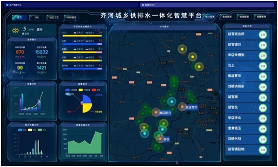 齐河县积极探索城乡供排水一体化长期稳定运行模式,以供水促排水,加强污水处理厂全方位管理,推进整县制污水治理工作,发挥互联网优势,搭建综合调度信息平台--智慧供排水一体化系统,以行政区划为单元,根据水厂、污水处理厂、供排水管网等设施对应关系,进行分层级实时监控,实现了供排水系统“一张图”展现、“一盘棋”监管。以无人值守“六个在线”一体化管理自动运行方式,对城乡分散厂站供排水调度及生产运营进行集中管理。运用远程监控、定期巡检,实时掌握设备的运行状态,实现数据联动,确保水质达标排放,让居民更满意。